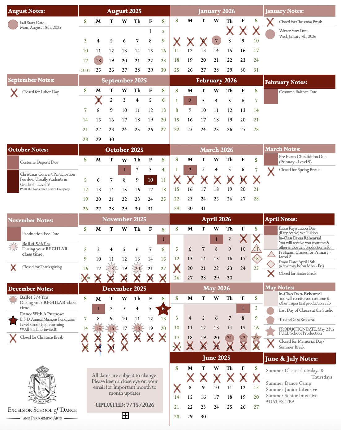 - Class Schedule – Weekly 2025/2026
